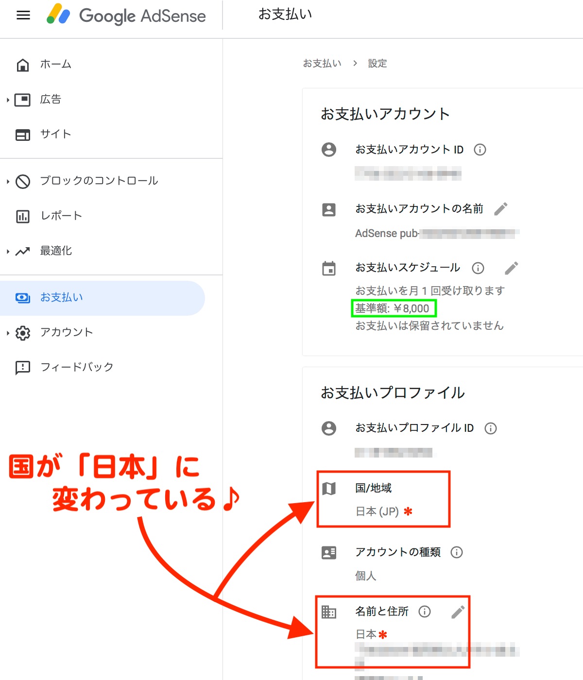 海外居住の時にGoogleアドセンスを始めたから、アドセンスに登録してある国を変更しなければ、登録してある銀行口座を日本国内のものに変更することもできず、報酬を受け取ることができない。